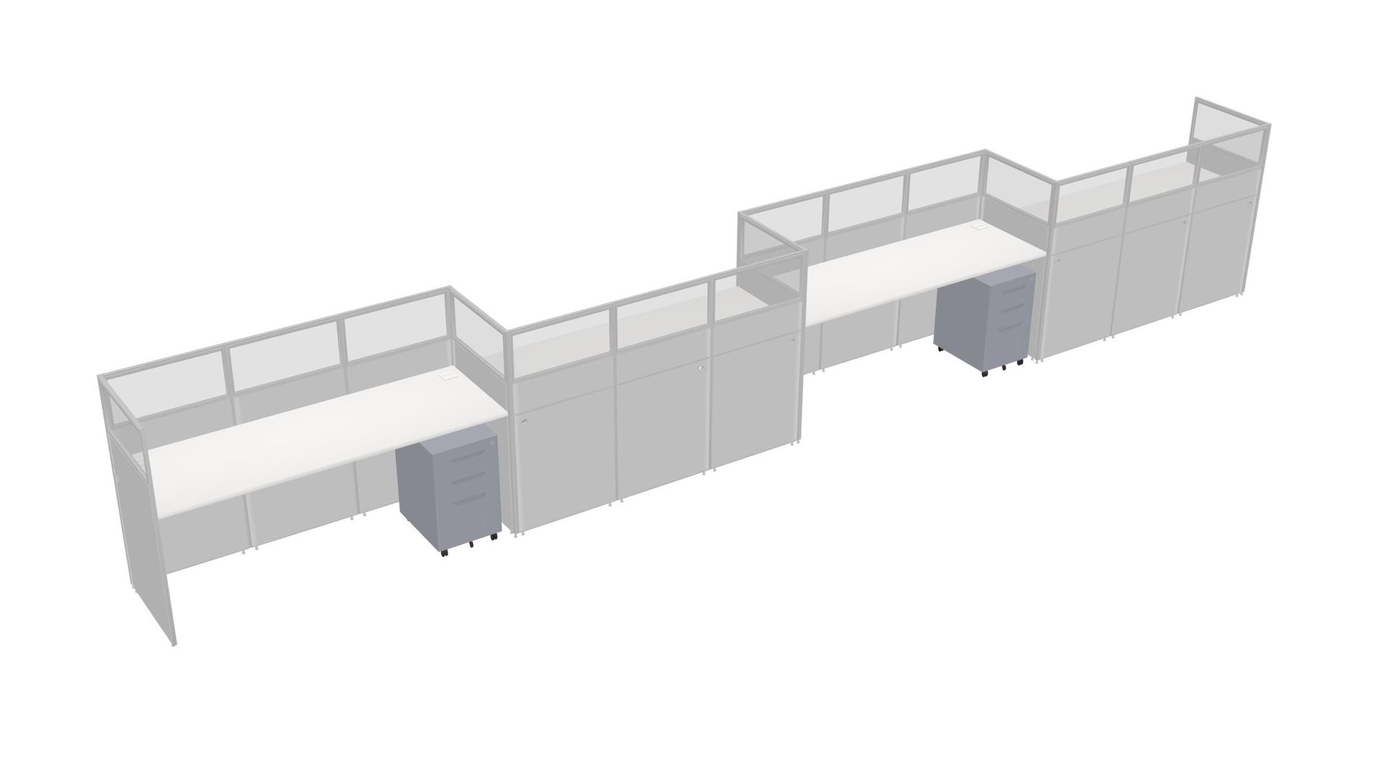 White Rectangular Cubicle Workstations For 4 - Zigzag Formation + Grey Metal Mobile Drawers