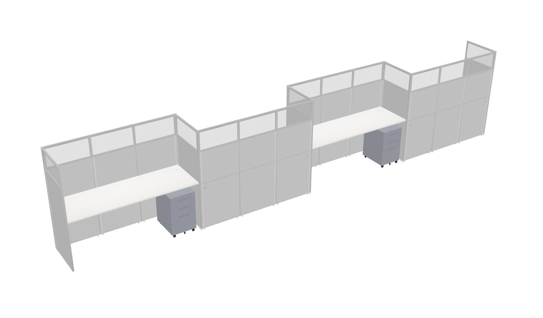White Rectangular Cubicle Workstations For 4 - Zigzag Formation + Grey Metal Mobile Drawers