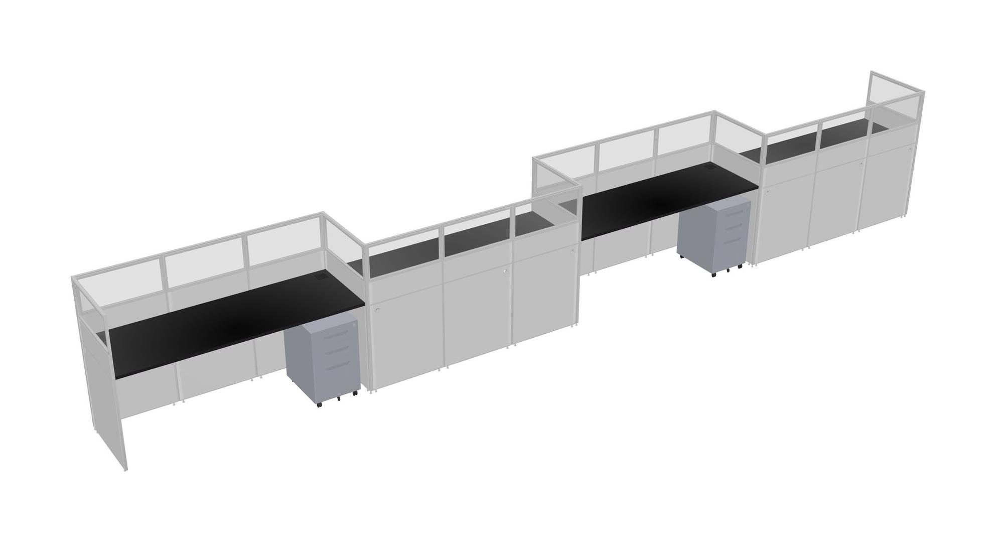 Black Rectangular Cubicle Workstations For 4 - Zigzag Formation + Grey Metal Mobile Drawers
