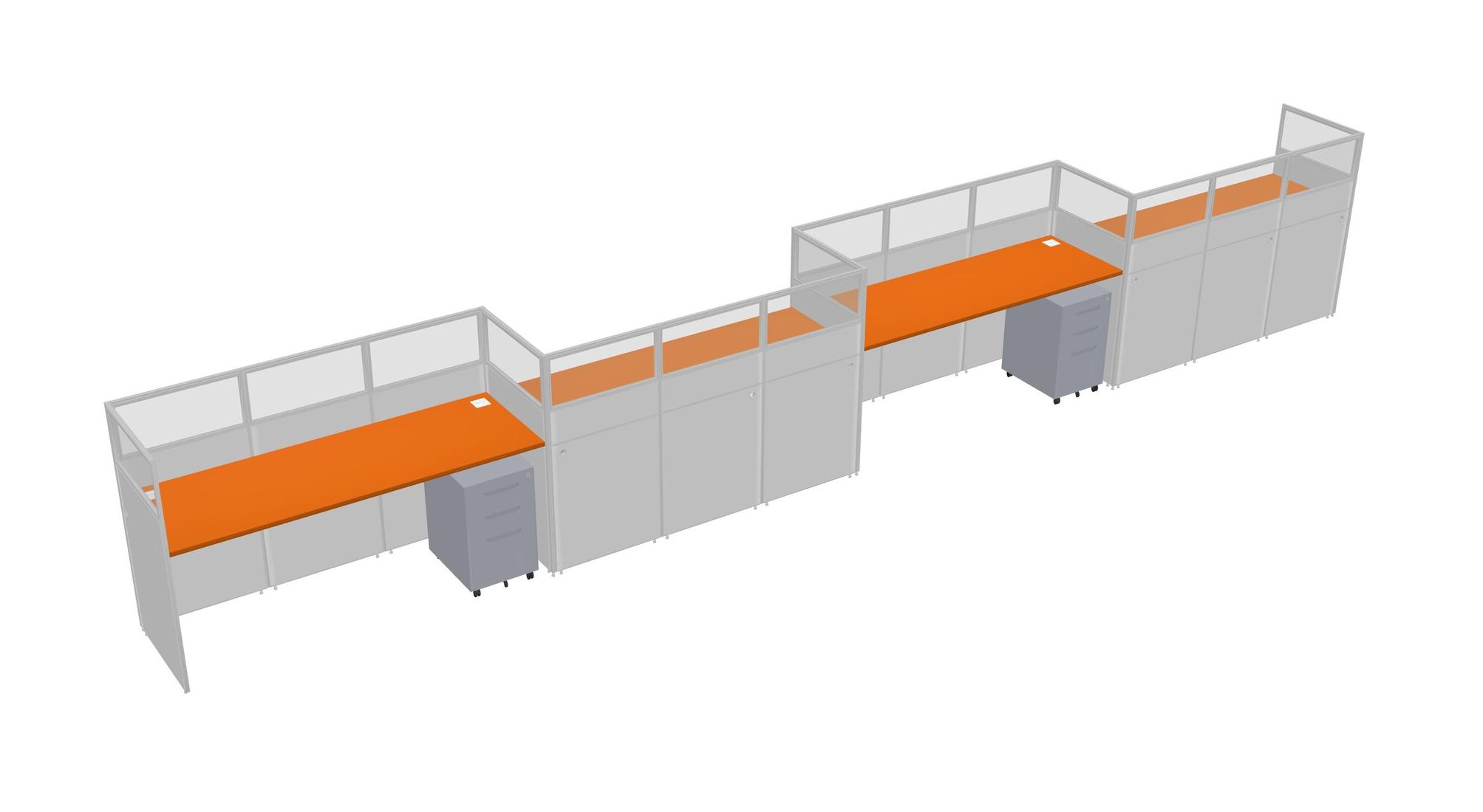 Orange Rectangular Cubicle Workstations For 4 - Zigzag Formation + Grey Metal Mobile Drawers