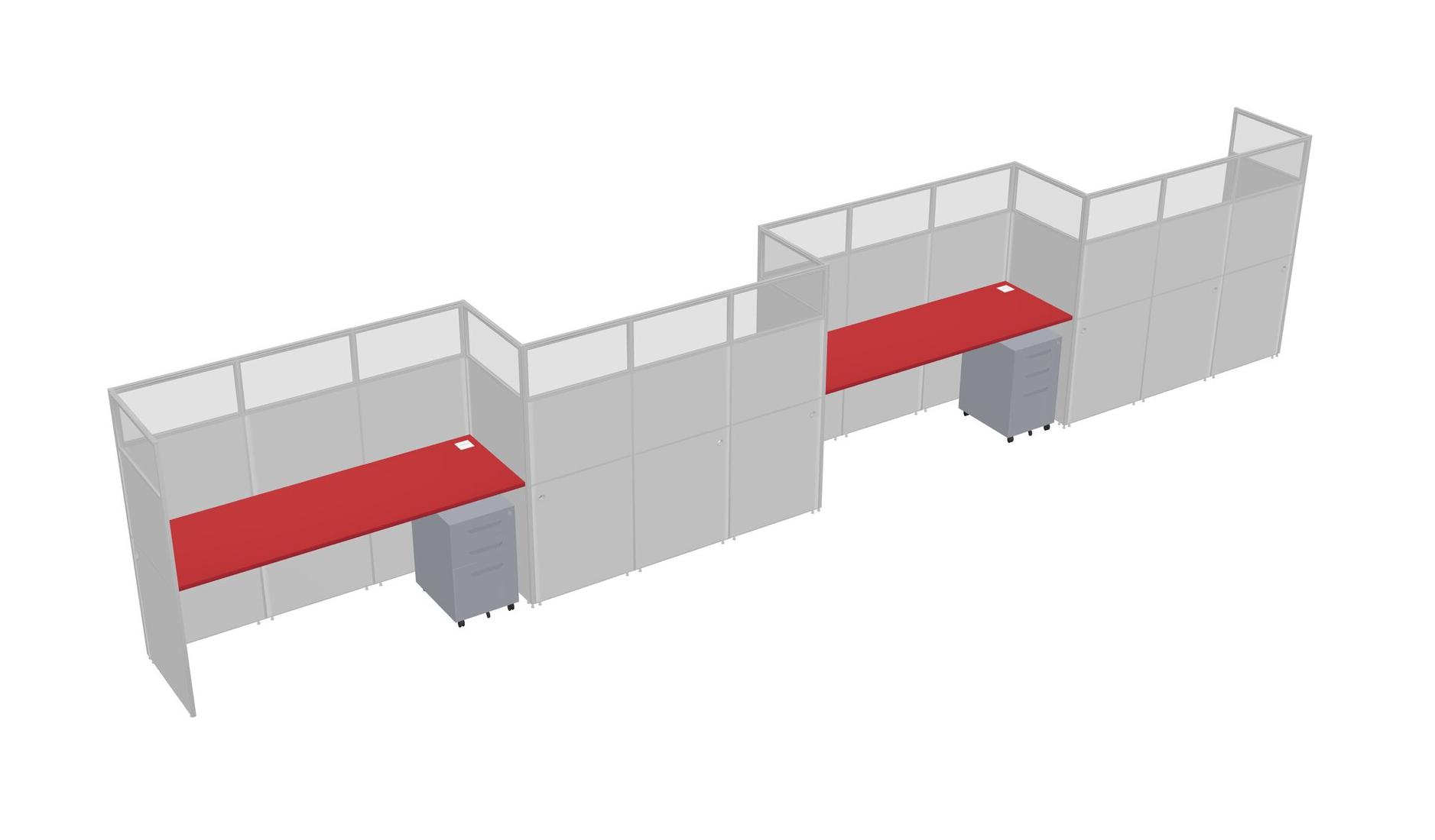 Prism Red Rectangular Cubicle Workstations For 4 - Zigzag Formation + Grey Metal Mobile Drawers