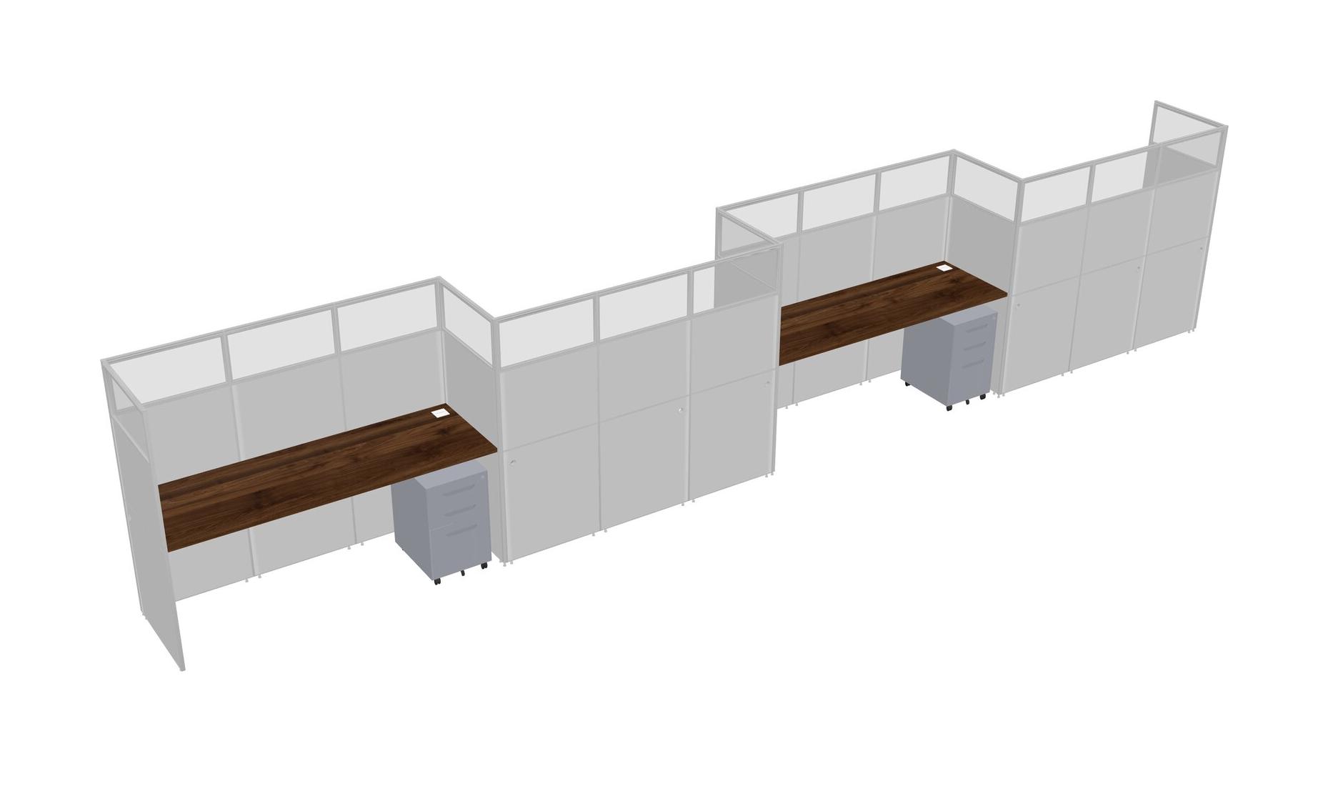 Columbia Walnut Rectangular Cubicle Workstations For 4 - Zigzag Formation + Grey Metal Mobile Drawers