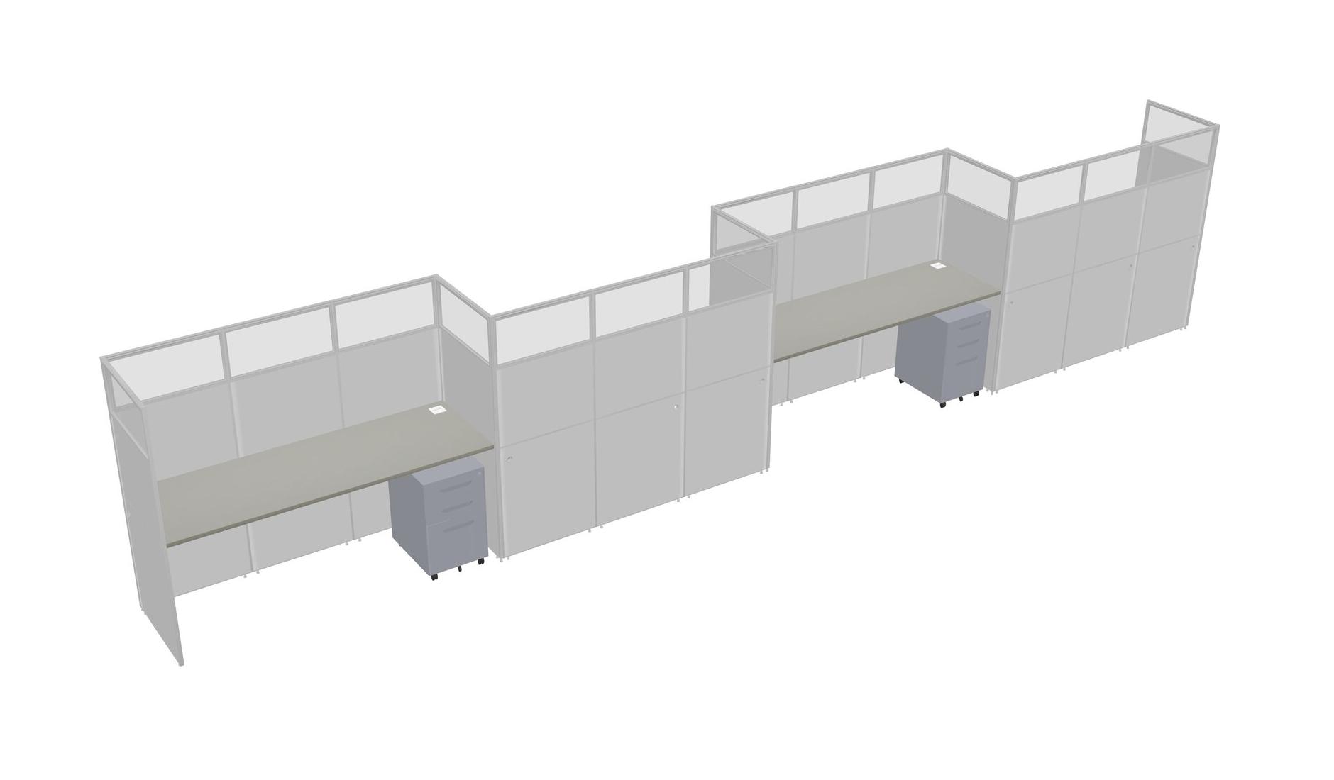 Grey Shadows Rectangular Cubicle Workstations For 4 - Zigzag Formation + Grey Metal Mobile Drawers
