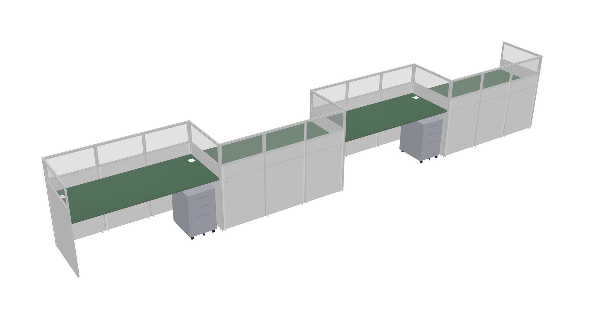 Green Rectangular Cubicle Workstations For 4 - Zigzag Formation + Grey Metal Mobile Drawers