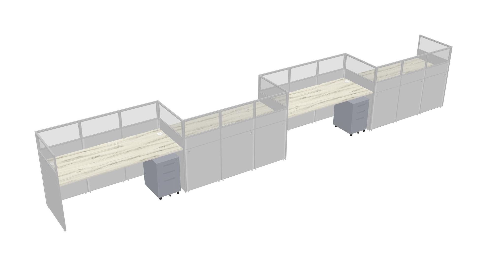 Heinne Holz Rectangular Cubicle Workstations For 4 - Zigzag Formation + Grey Metal Mobile Drawers