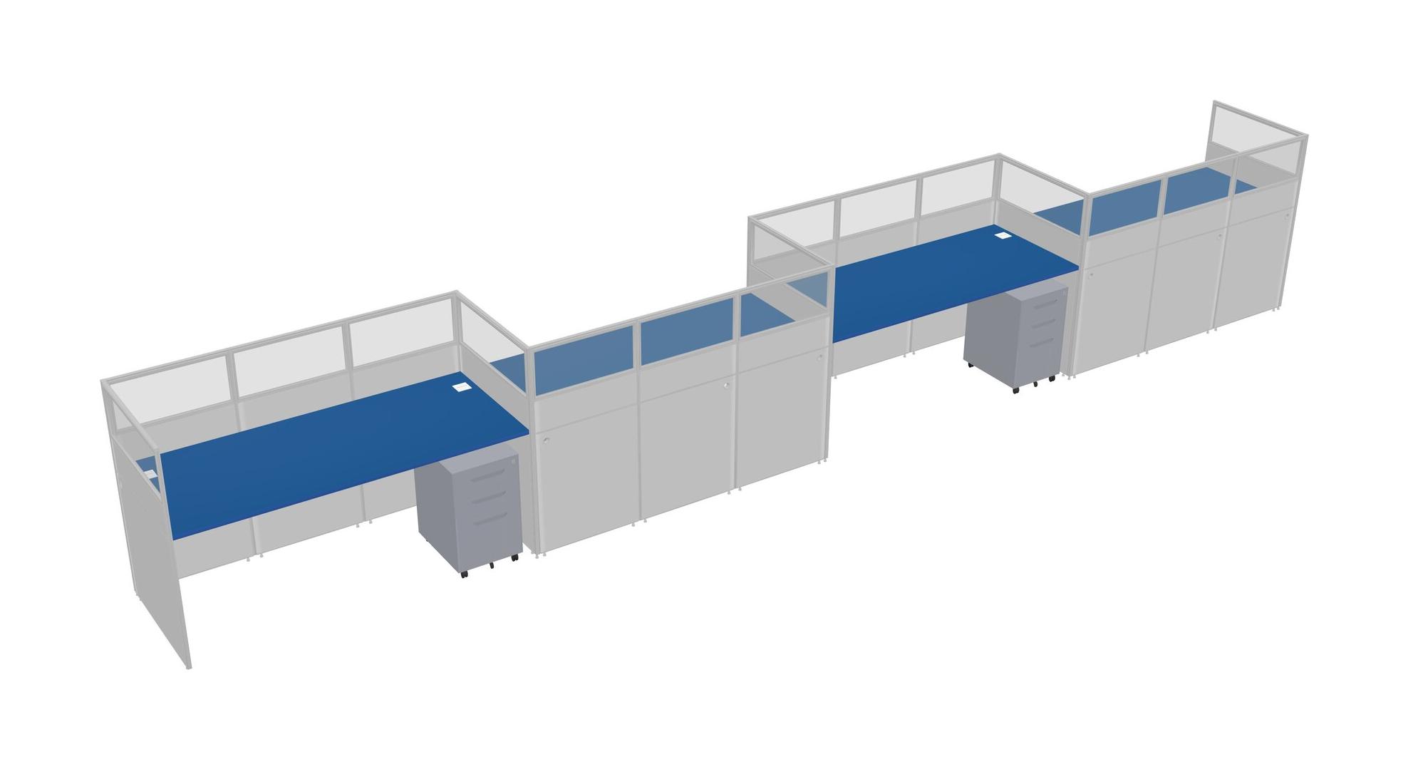 Prism Blue Rectangular Cubicle Workstations For 4 - Zigzag Formation + Grey Metal Mobile Drawers