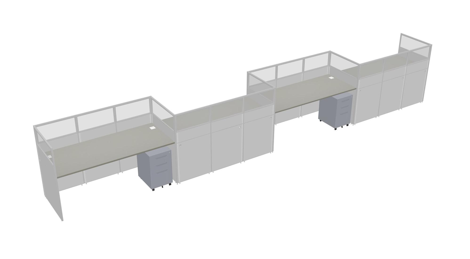 Grey Shadows Rectangular Cubicle Workstations For 4 - Zigzag Formation + Grey Metal Mobile Drawers