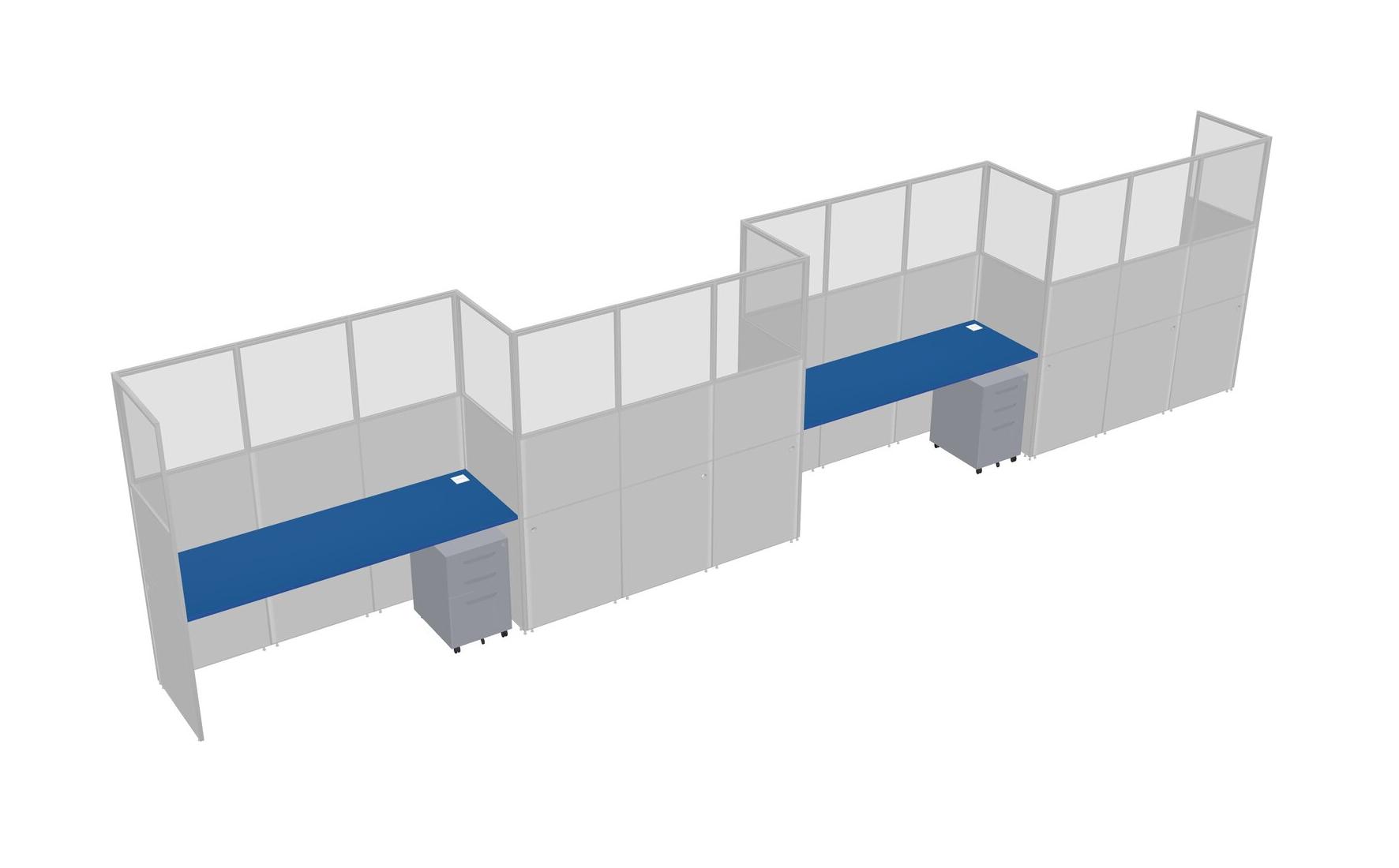 Prism Blue Rectangular Cubicle Workstations For 4 - Zigzag Formation + Grey Metal Mobile Drawers