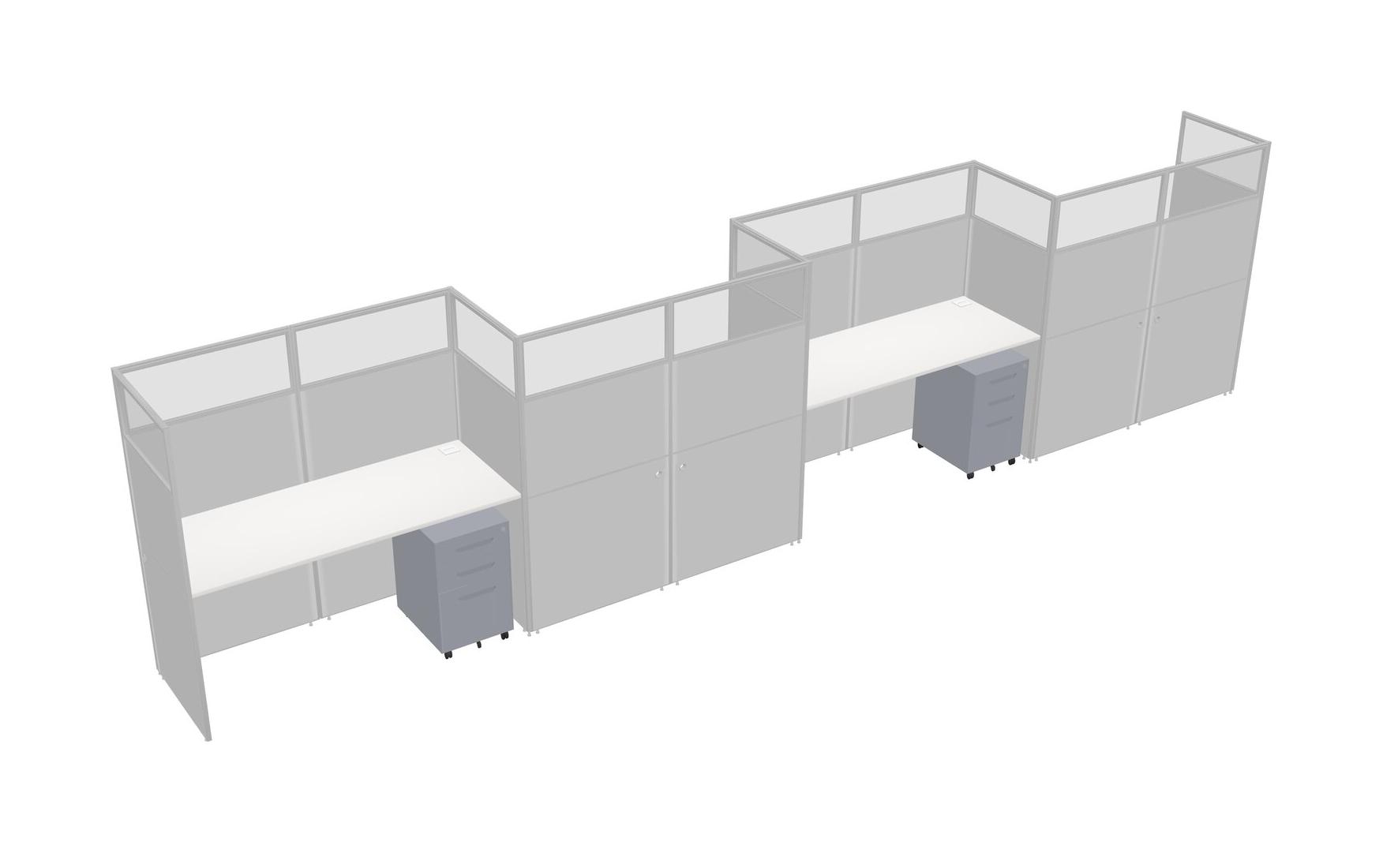 White Rectangular Cubicle Workstations For 4 - Zigzag Formation + Grey Metal Mobile Drawers