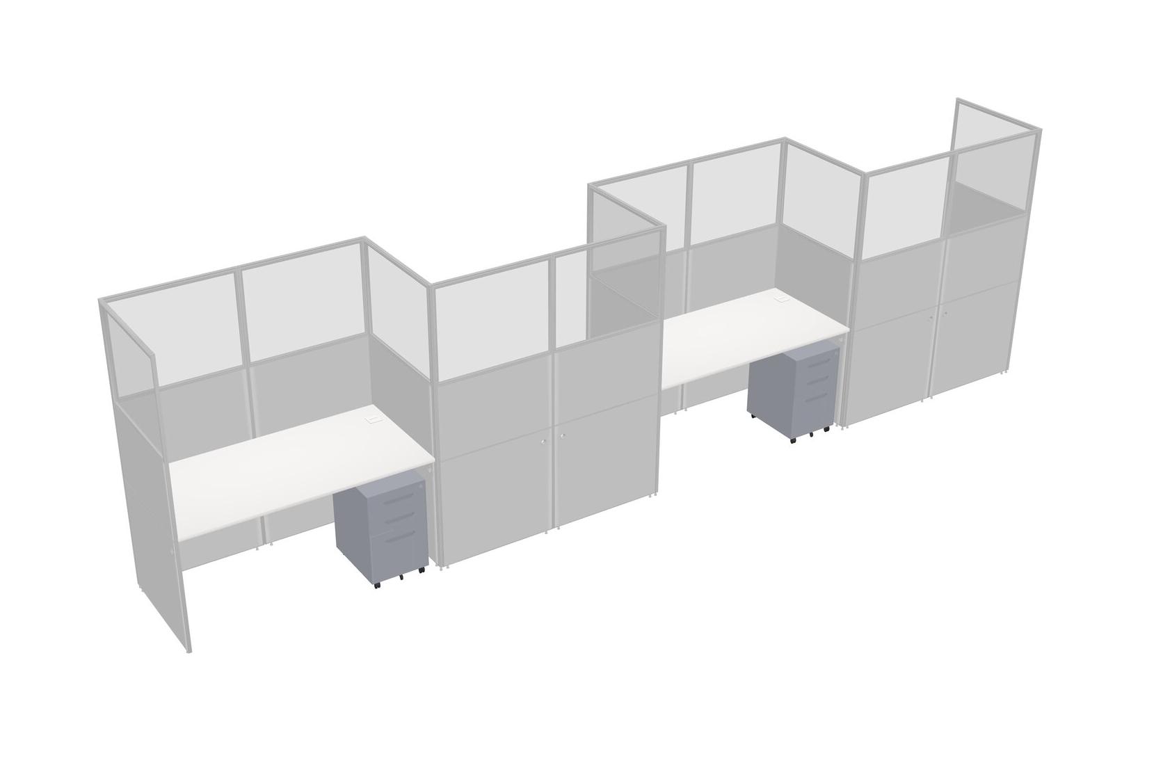 White Rectangular Cubicle Workstations For 4 - Zigzag Formation + Grey Metal Mobile Drawers