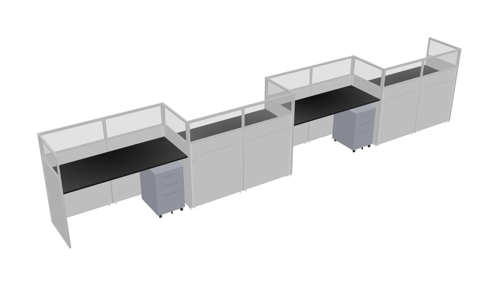Black Rectangular Cubicle Workstations For 4 - Zigzag Formation + Grey Metal Mobile Drawers