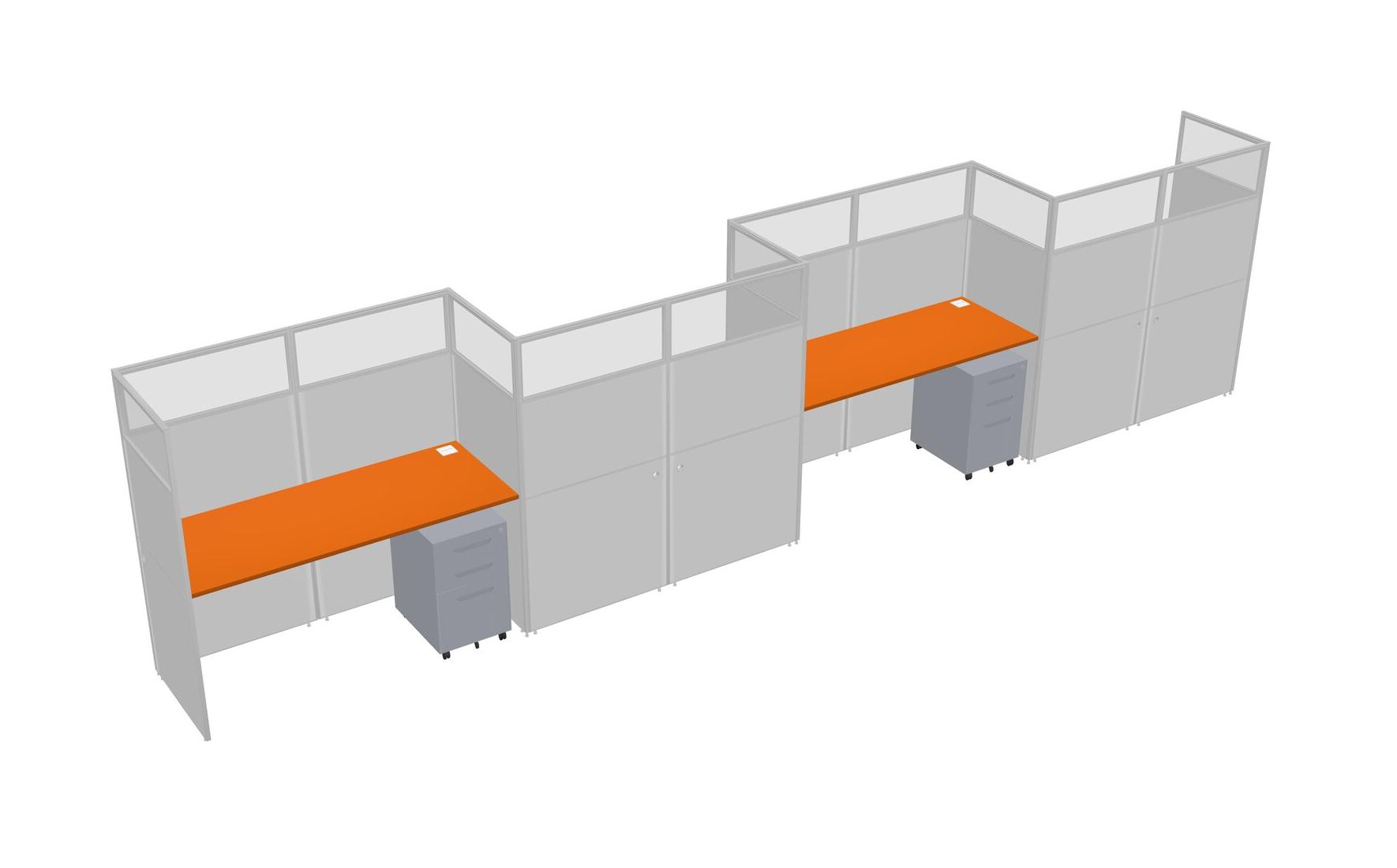 Orange Rectangular Cubicle Workstations For 4 - Zigzag Formation + Grey Metal Mobile Drawers