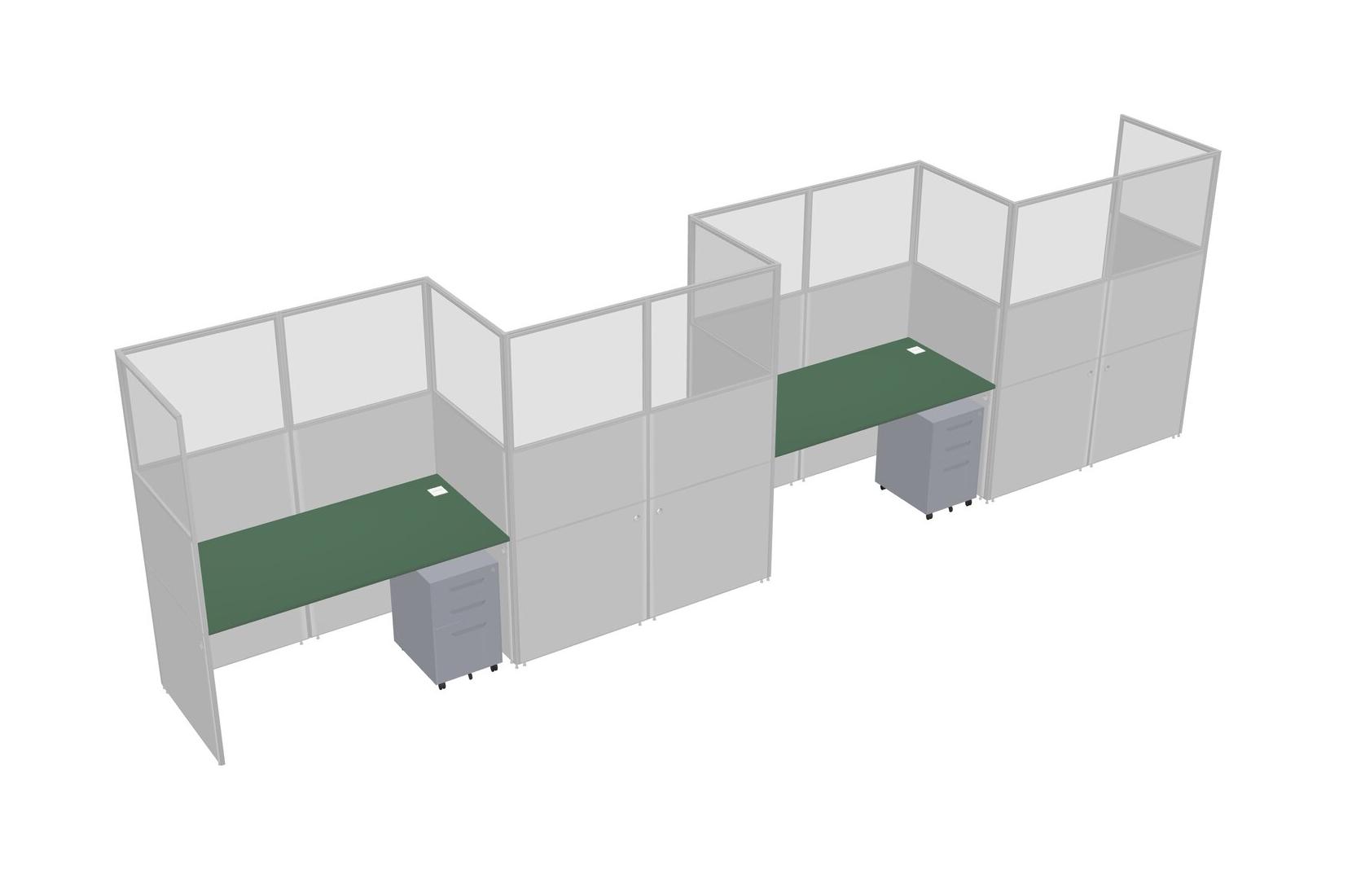 Green Rectangular Cubicle Workstations For 4 - Zigzag Formation + Grey Metal Mobile Drawers