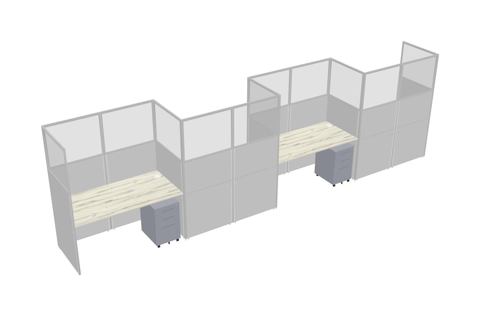 Heinne Holz Rectangular Cubicle Workstations For 4 - Zigzag Formation + Grey Metal Mobile Drawers
