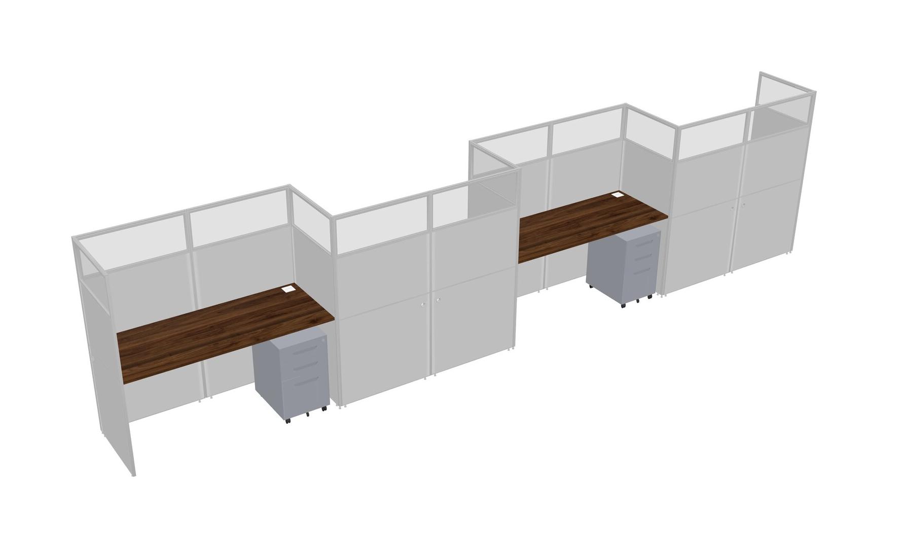Columbia Walnut Rectangular Cubicle Workstations For 4 - Zigzag Formation + Grey Metal Mobile Drawers