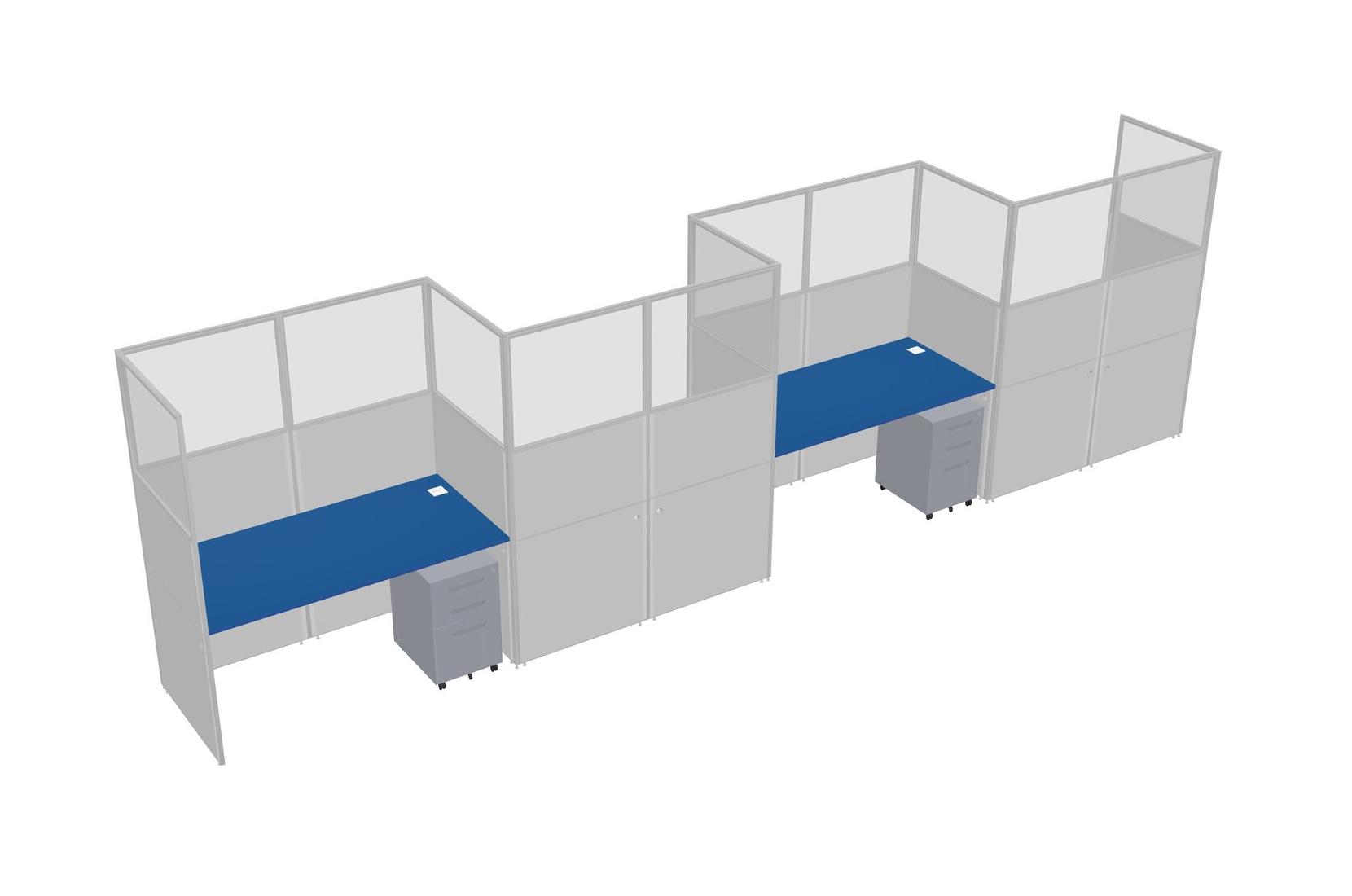 Prism Blue Rectangular Cubicle Workstations For 4 - Zigzag Formation + Grey Metal Mobile Drawers