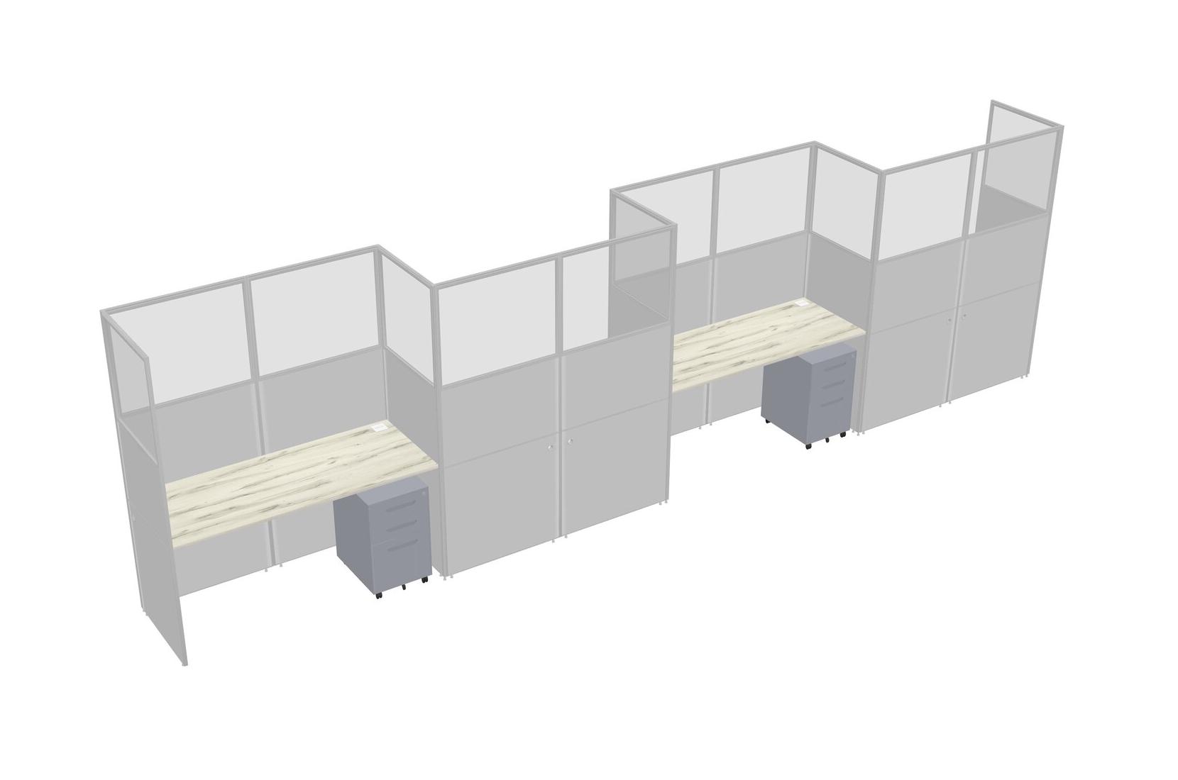 Heinne Holz Rectangular Cubicle Workstations For 4 - Zigzag Formation + Grey Metal Mobile Drawers