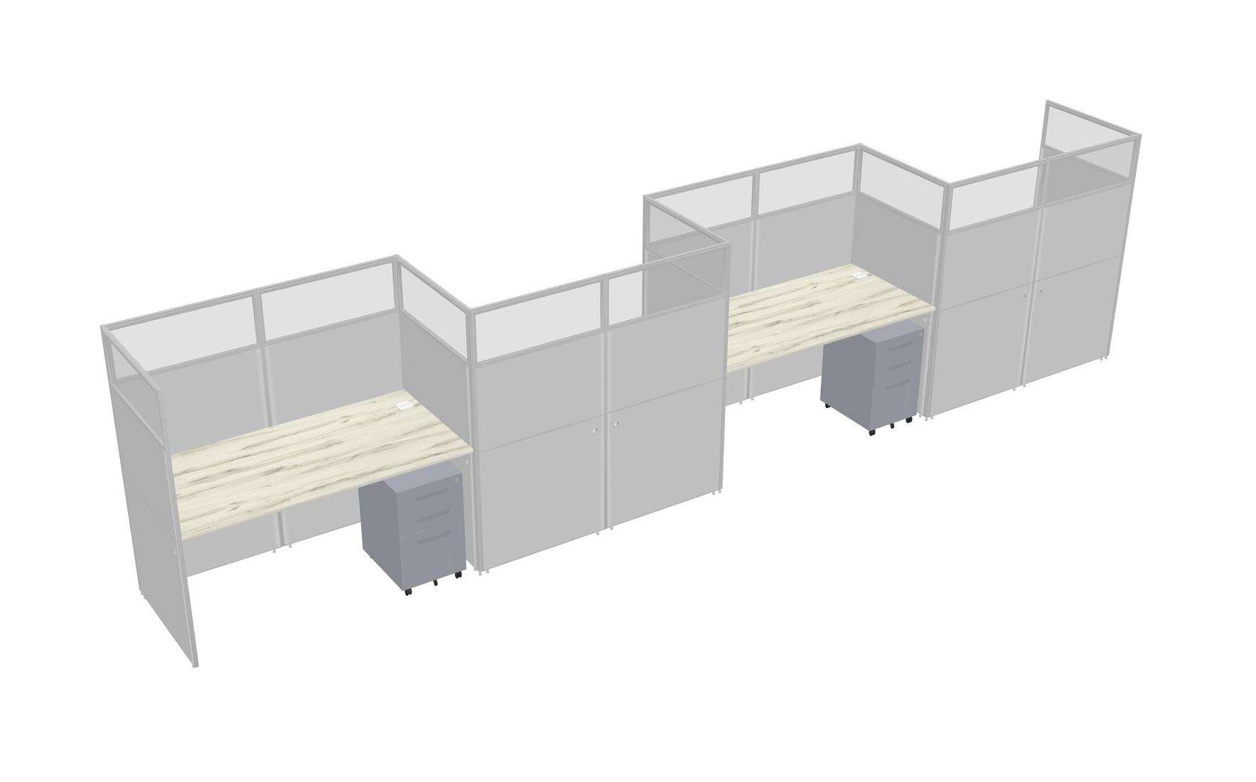 Heinne Holz Rectangular Cubicle Workstations For 4 - Zigzag Formation + Grey Metal Mobile Drawers