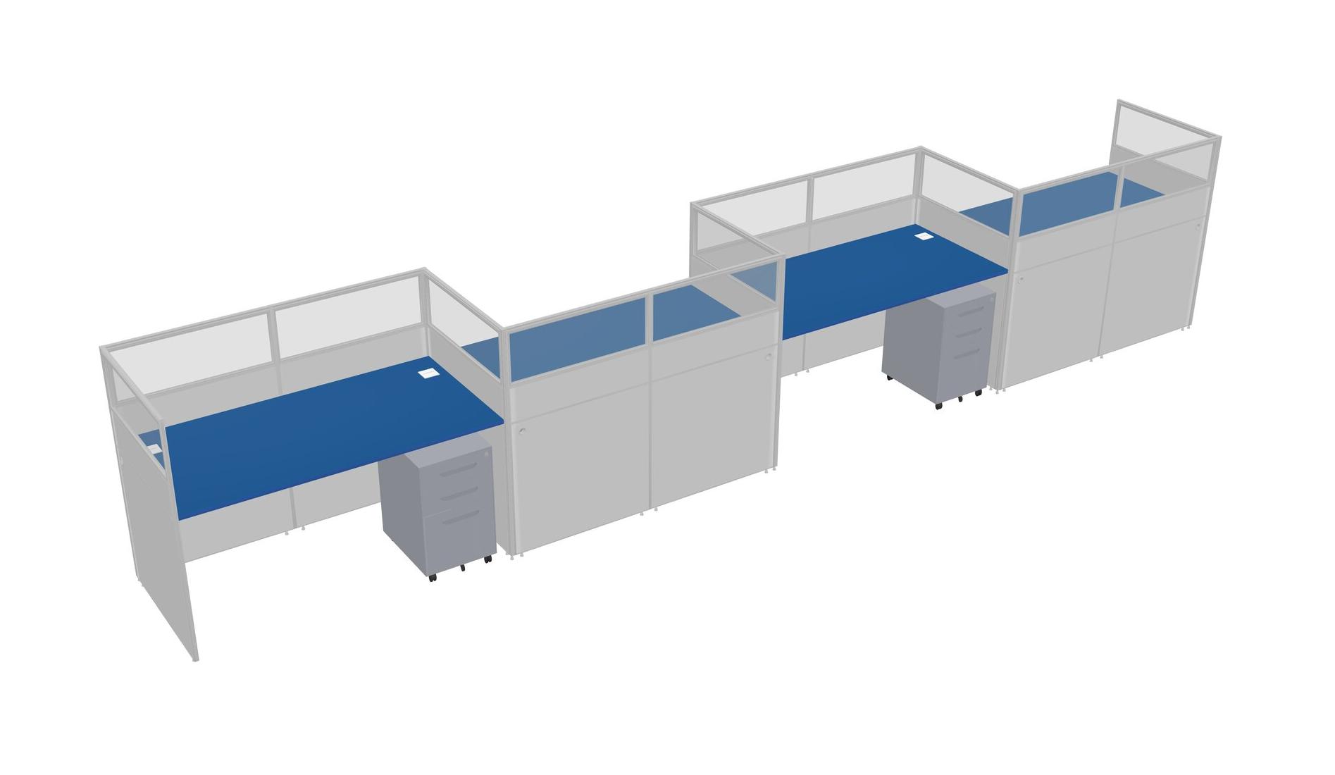 Prism Blue Rectangular Cubicle Workstations For 4 - Zigzag Formation + Grey Metal Mobile Drawers