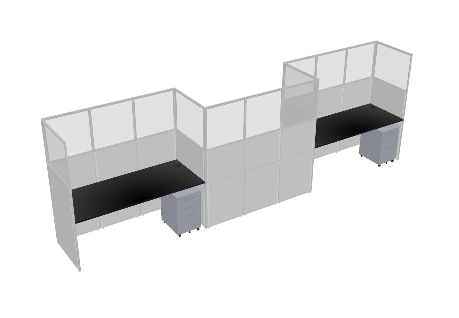 Black Rectangular Cubicle Workstations For 3 - Zigzag Formation + Grey Metal Mobile Drawers