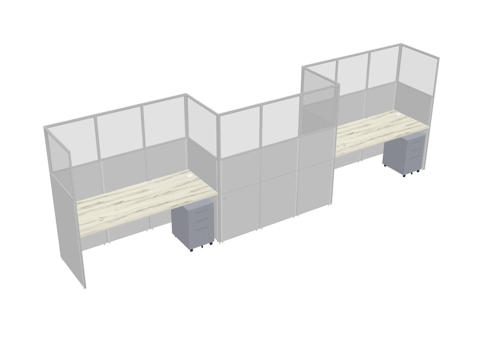 Heinne Holz Rectangular Cubicle Workstations For 3 - Zigzag Formation + Grey Metal Mobile Drawers