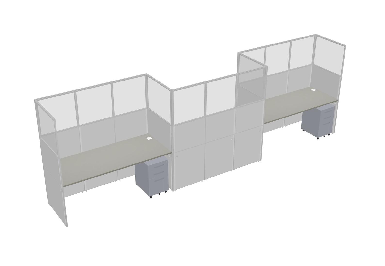 Grey Shadows Rectangular Cubicle Workstations For 3 - Zigzag Formation + Grey Metal Mobile Drawers