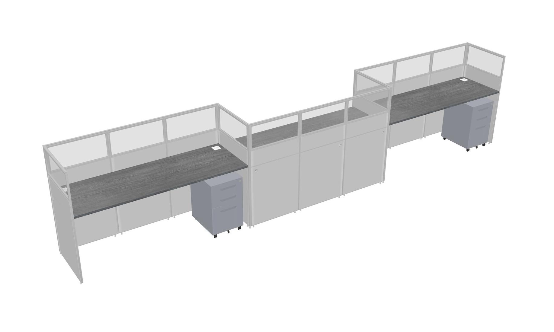 Grey Rectangular Cubicle Workstations For 3 - Zigzag Formation + Grey Metal Mobile Drawers