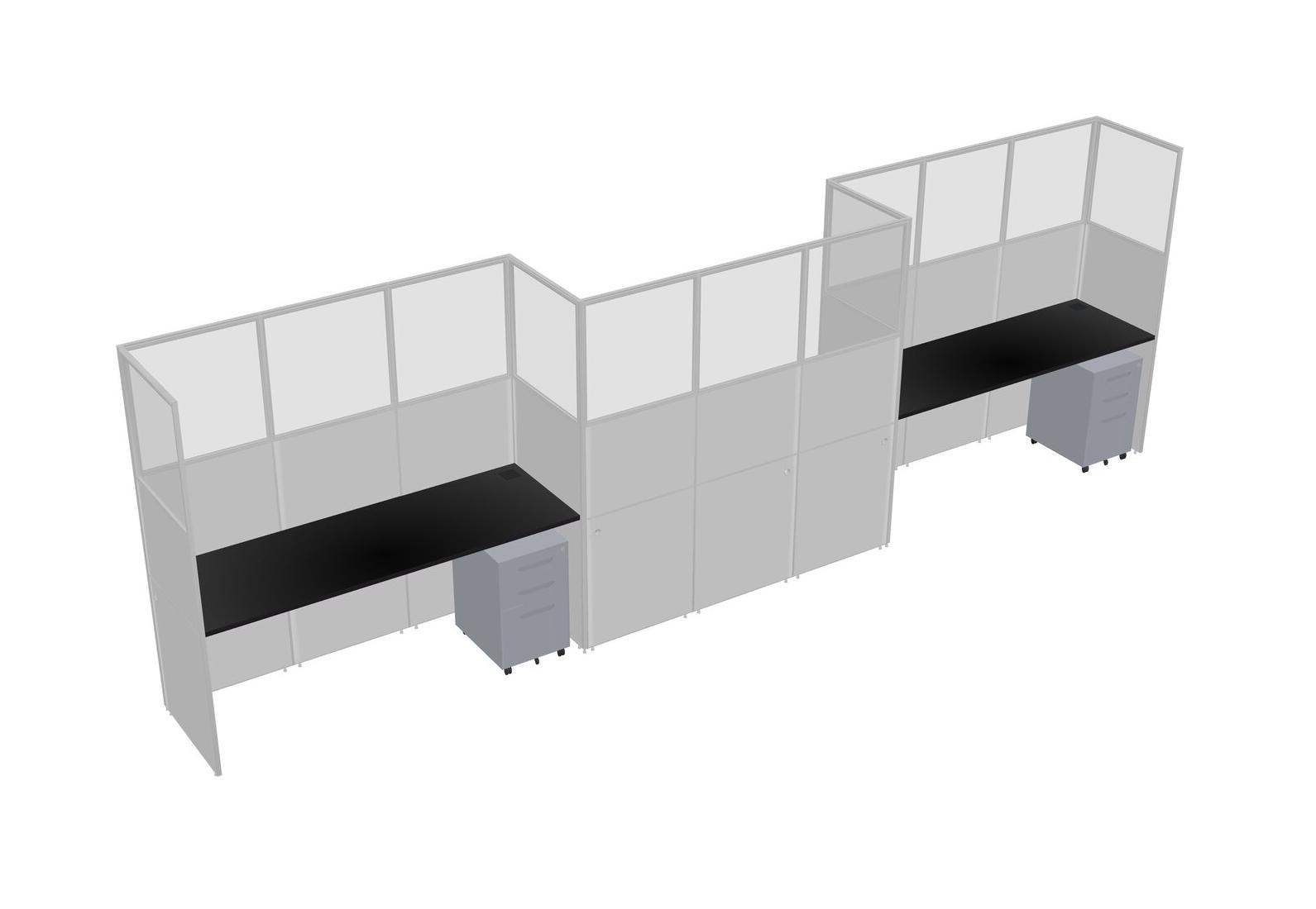 Black Rectangular Cubicle Workstations For 3 - Zigzag Formation + Grey Metal Mobile Drawers