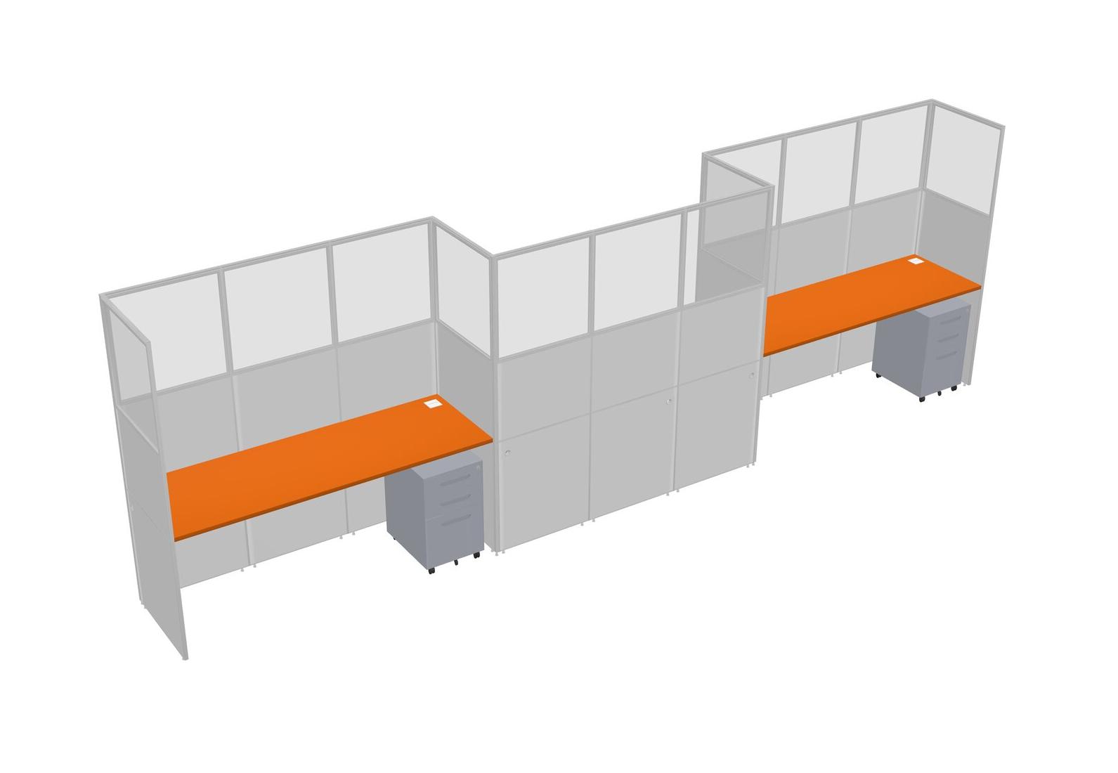 Orange Rectangular Cubicle Workstations For 3 - Zigzag Formation + Grey Metal Mobile Drawers