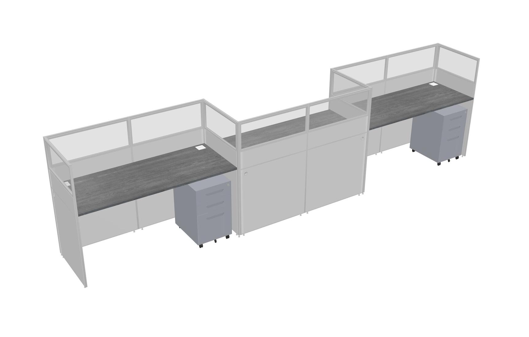 Grey Rectangular Cubicle Workstations For 3 - Zigzag Formation + Grey Metal Mobile Drawers