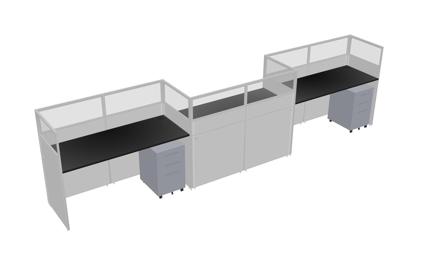 Black Rectangular Cubicle Workstations For 3 - Zigzag Formation + Grey Metal Mobile Drawers