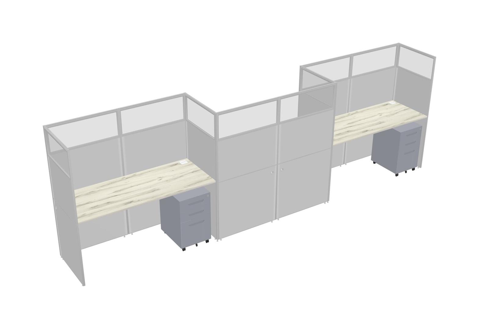 Heinne Holz Rectangular Cubicle Workstations For 3 - Zigzag Formation + Grey Metal Mobile Drawers