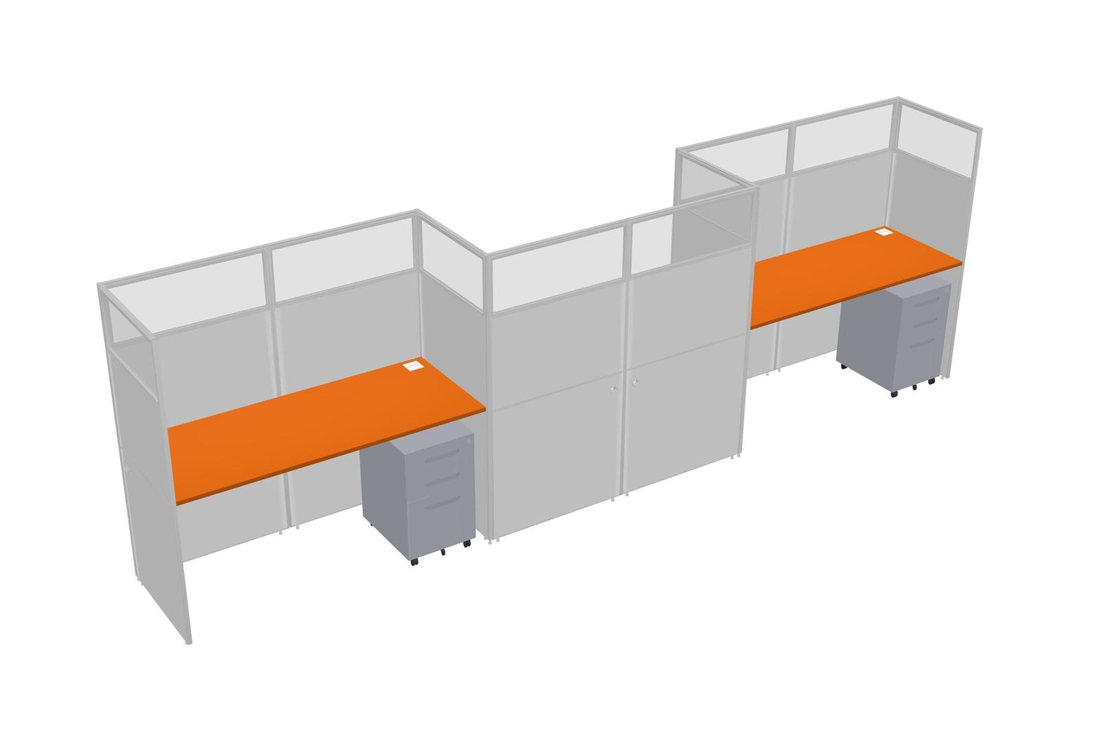 Orange Rectangular Cubicle Workstations For 3 - Zigzag Formation + Grey Metal Mobile Drawers