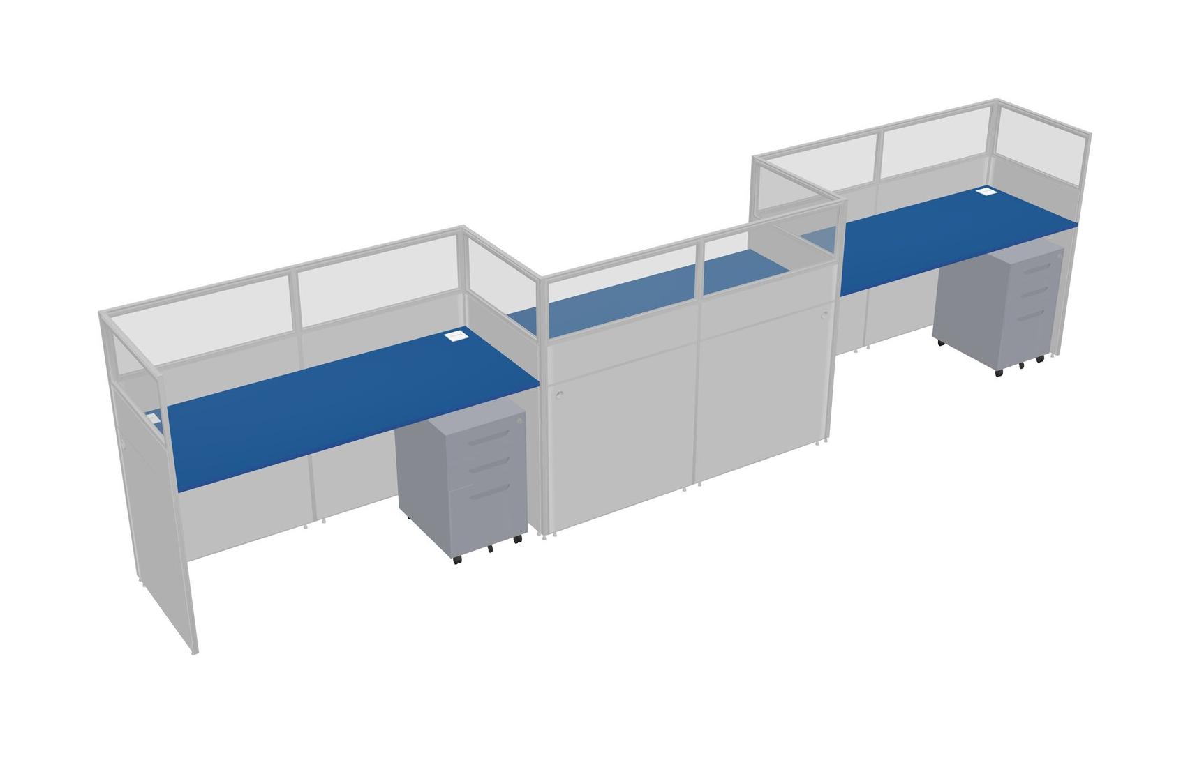 Prism Blue Rectangular Cubicle Workstations For 3 - Zigzag Formation + Grey Metal Mobile Drawers