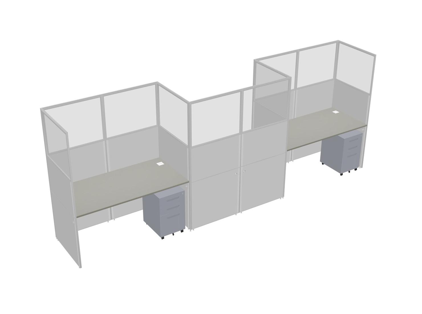 Grey Shadows Rectangular Cubicle Workstations For 3 - Zigzag Formation + Grey Metal Mobile Drawers