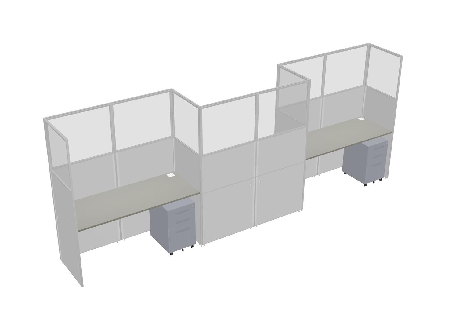 Grey Shadows Rectangular Cubicle Workstations For 3 - Zigzag Formation + Grey Metal Mobile Drawers