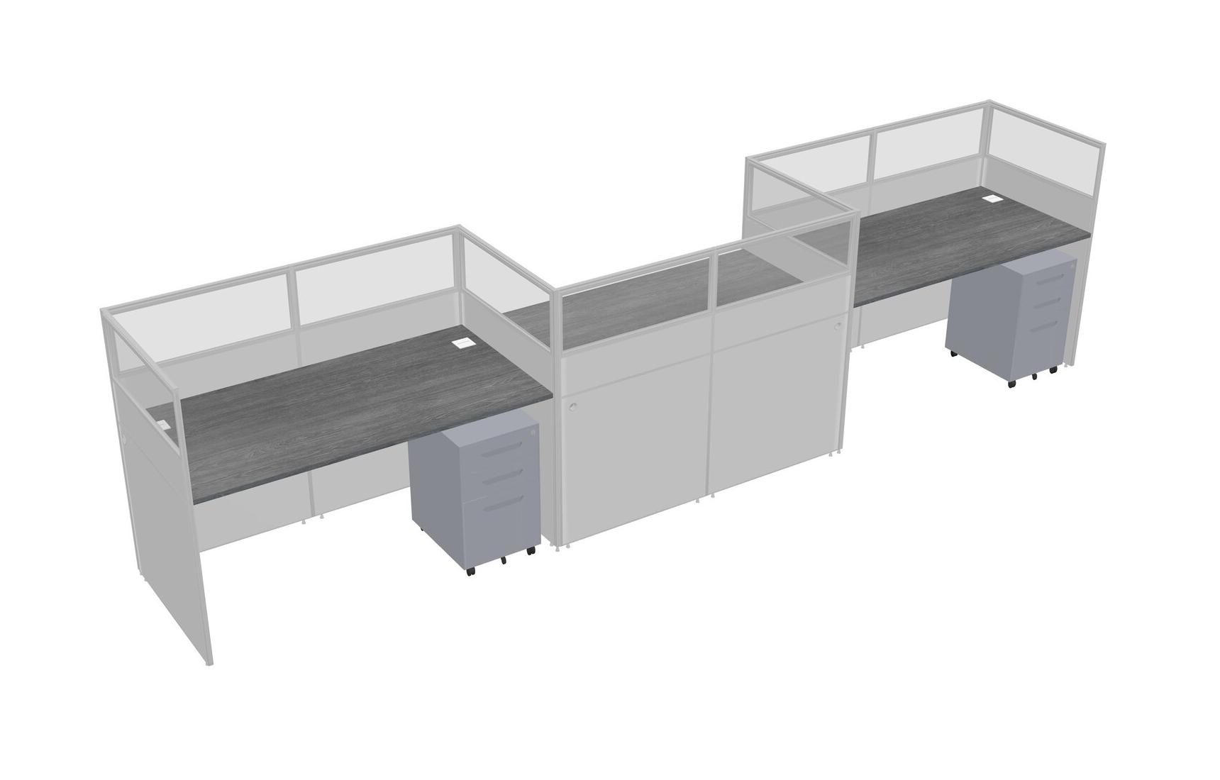 Grey Rectangular Cubicle Workstations For 3 - Zigzag Formation + Grey Metal Mobile Drawers