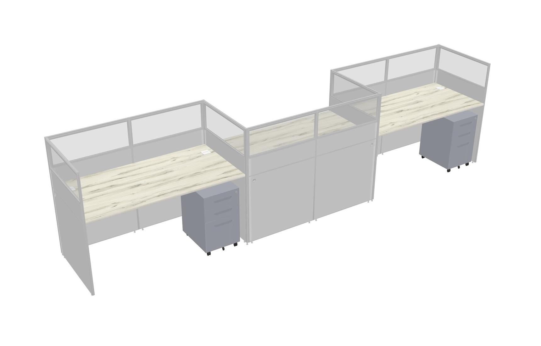 Heinne Holz Rectangular Cubicle Workstations For 3 - Zigzag Formation + Grey Metal Mobile Drawers