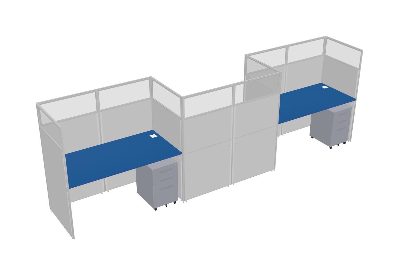 Prism Blue Rectangular Cubicle Workstations For 3 - Zigzag Formation + Grey Metal Mobile Drawers