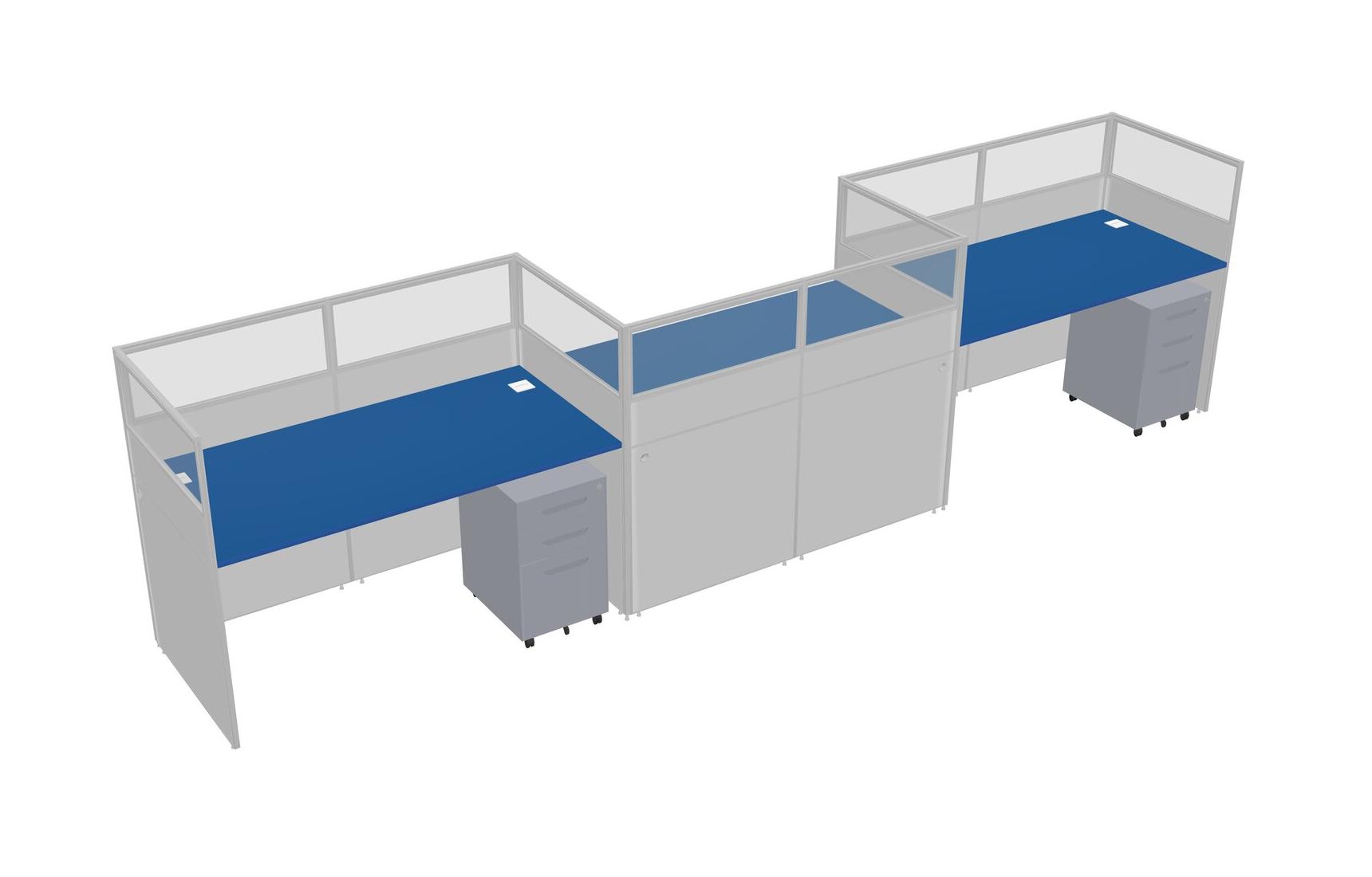 Prism Blue Rectangular Cubicle Workstations For 3 - Zigzag Formation + Grey Metal Mobile Drawers