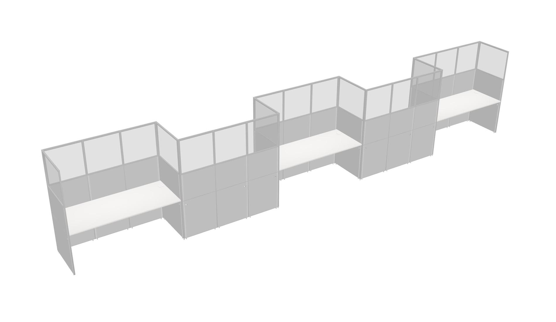 White Rectangular Cubicle Workstations For 5 - Zigzag Formation