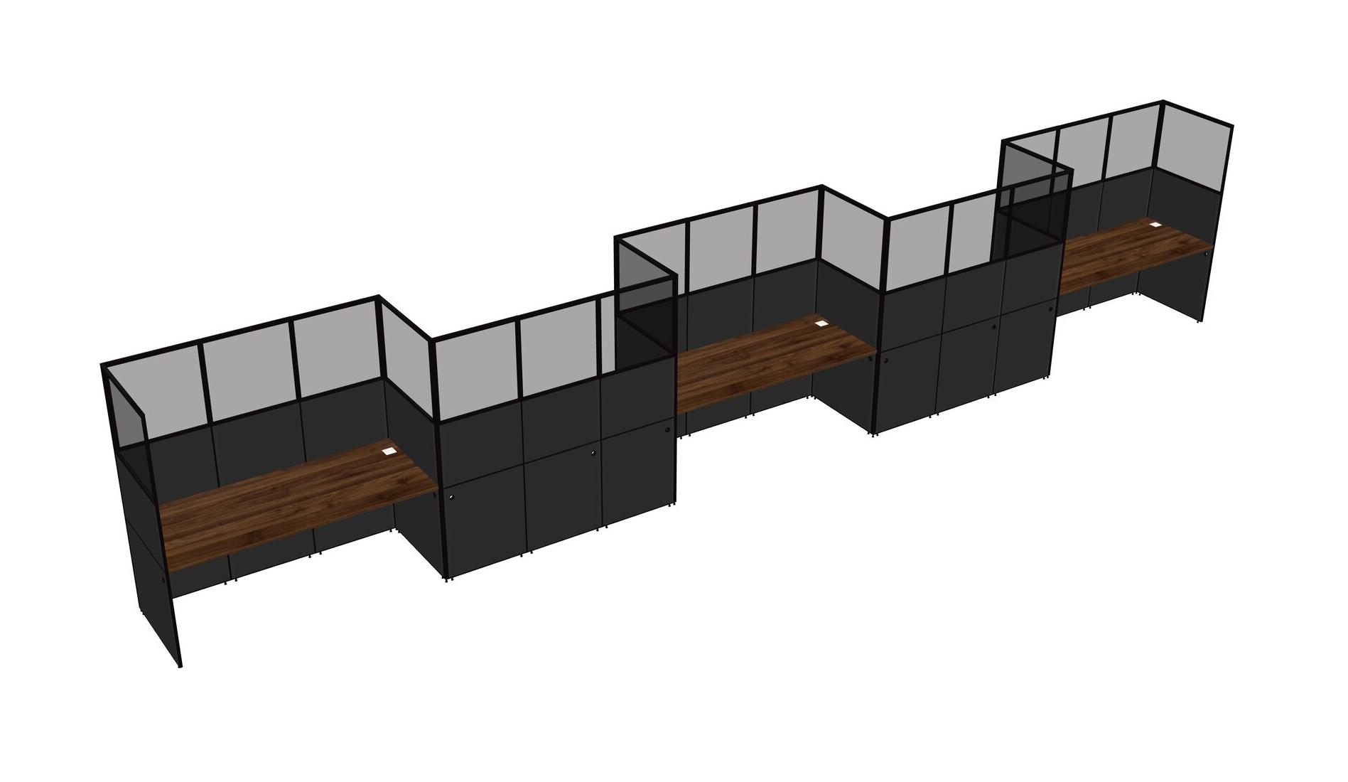 Columbia Walnut Rectangular Cubicle Workstations For 5 - Zigzag Formation
