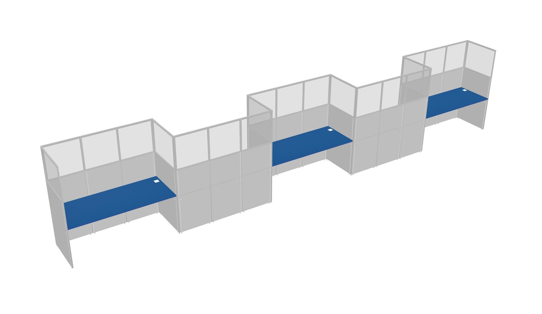 Prism Blue Rectangular Cubicle Workstations For 5 - Zigzag Formation