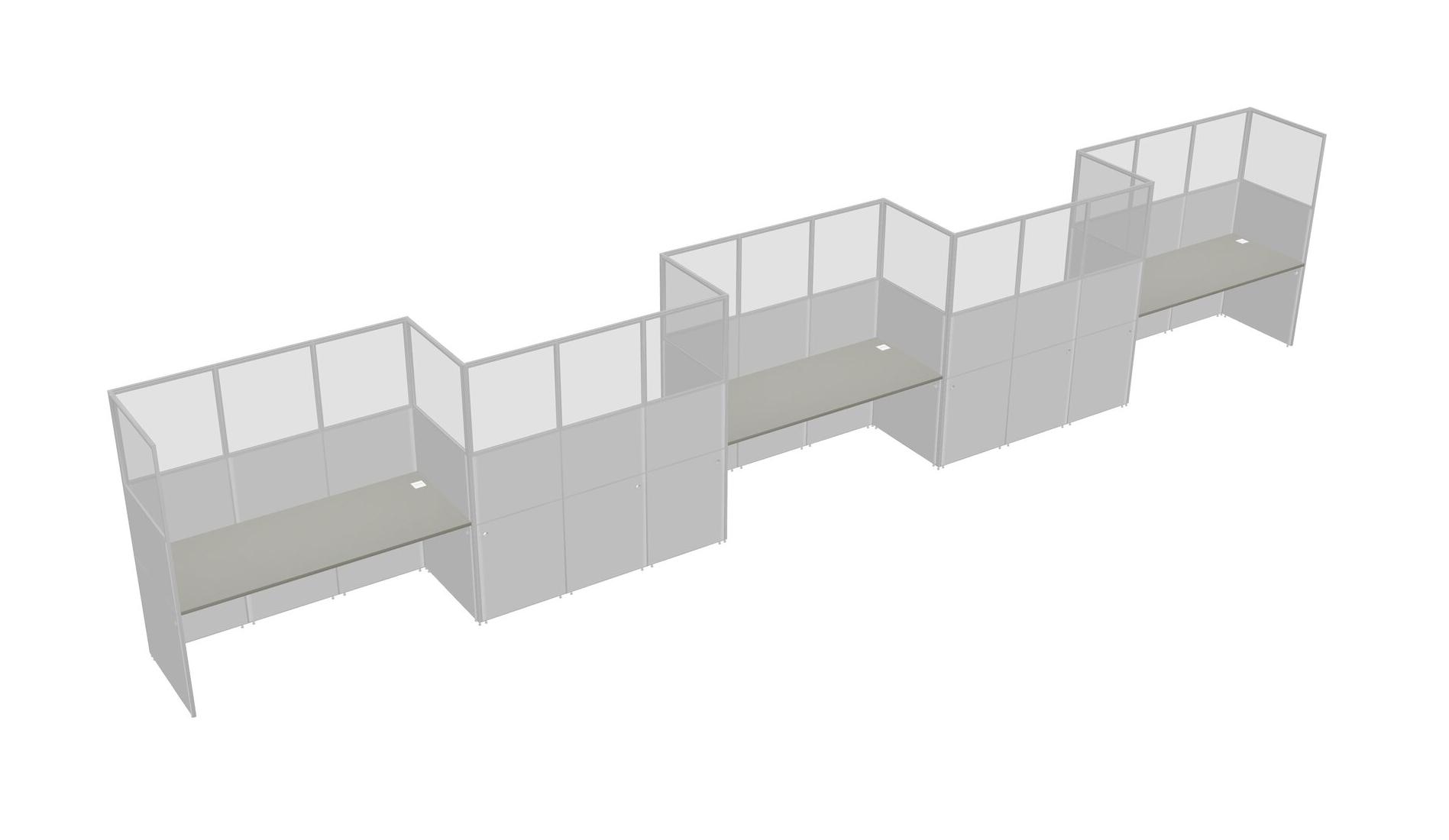 Grey Shadows Rectangular Cubicle Workstations For 5 - Zigzag Formation