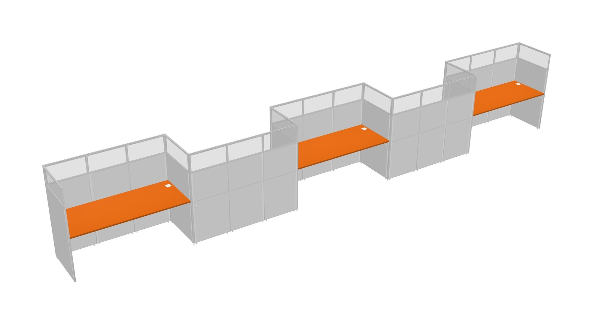 Orange Rectangular Cubicle Workstations For 5 - Zigzag Formation