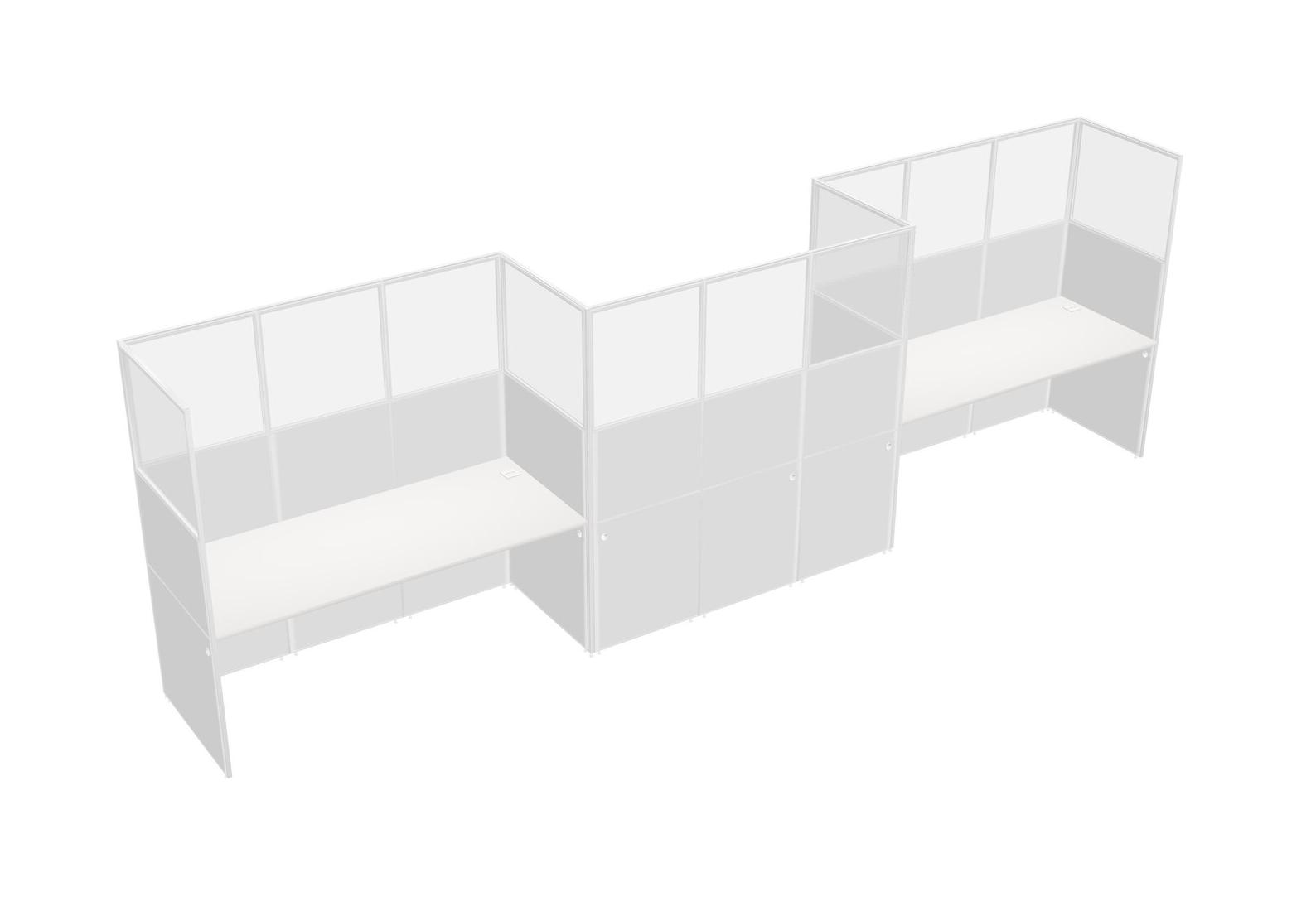White Rectangular Cubicle Workstations For 3 - Zigzag Formation