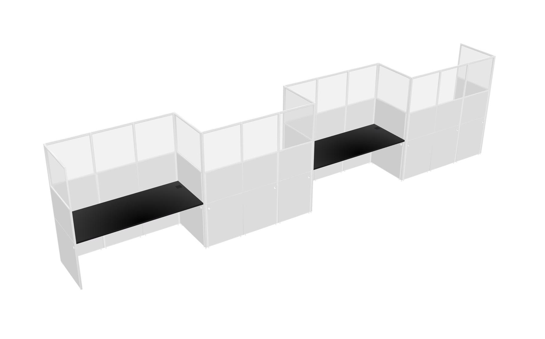 Black Rectangular Cubicle Workstations For 4 - Zigzag Formation