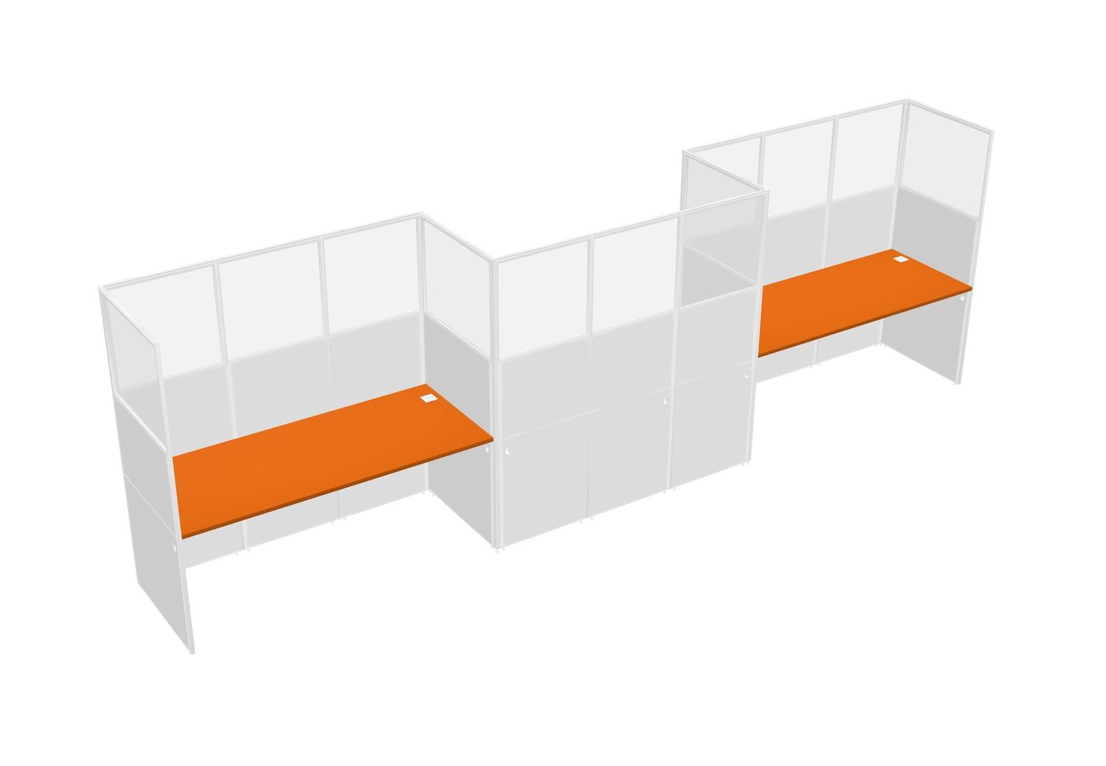 Orange Rectangular Cubicle Workstations For 3 - Zigzag Formation
