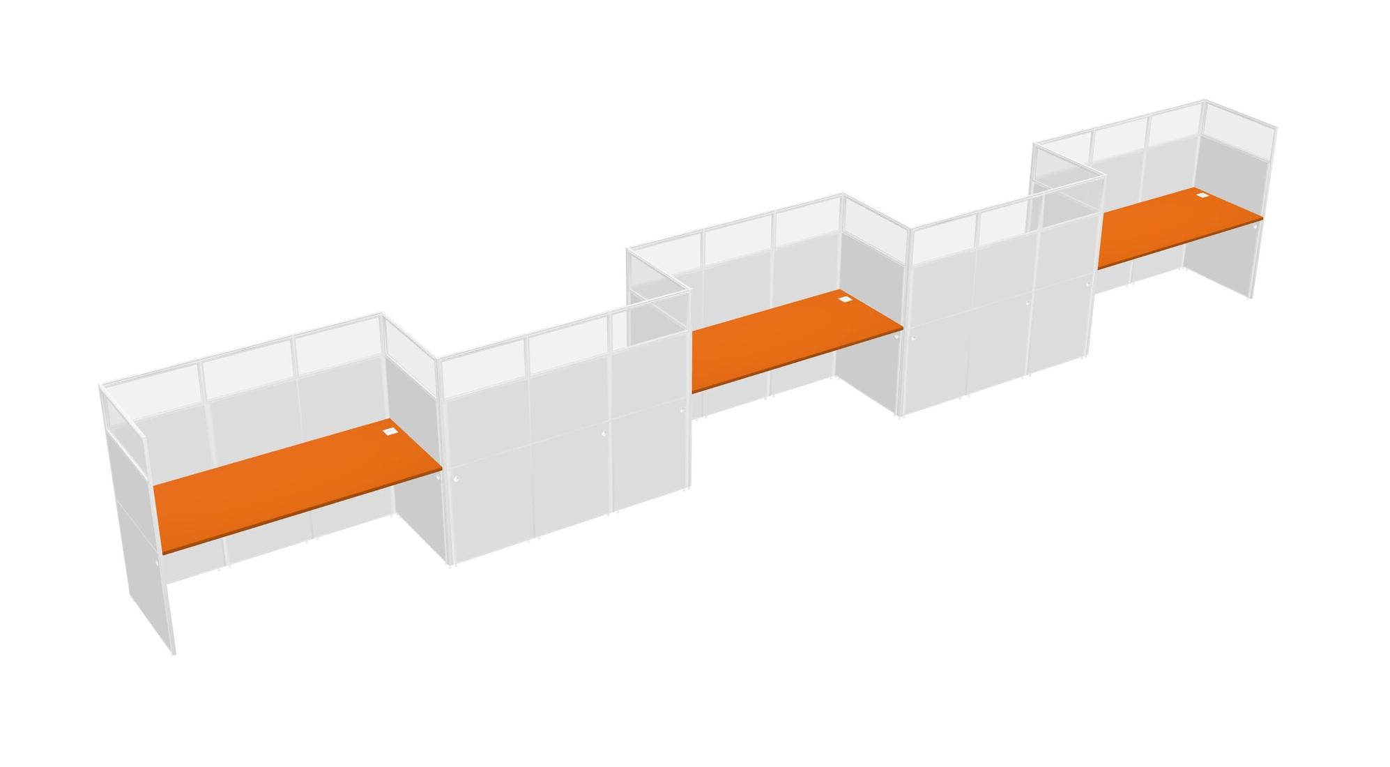 Orange Rectangular Cubicle Workstations For 5 - Zigzag Formation