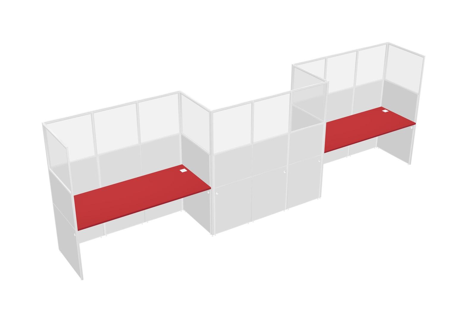 Prism Red Rectangular Cubicle Workstations For 3 - Zigzag Formation